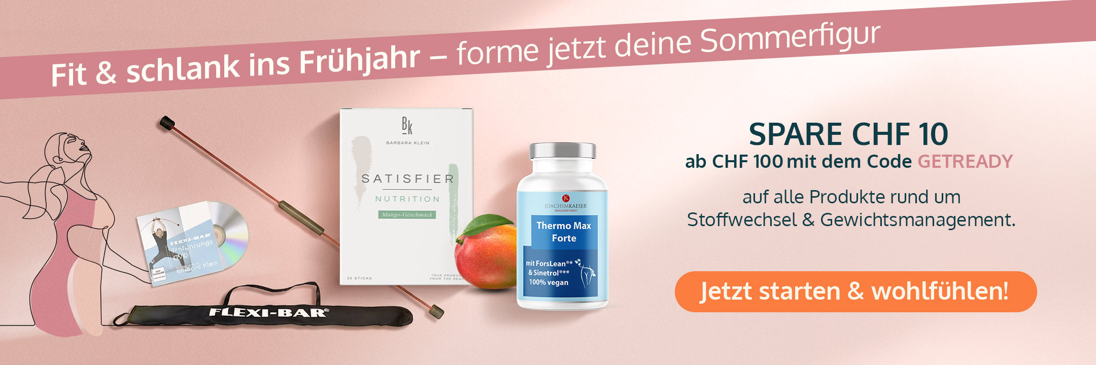 Spare CHF 10 ab CHF 100 mit dem Code GETREADY auf alle Produkte rund um Stoffwechsel & Gewichtsmanagement.
