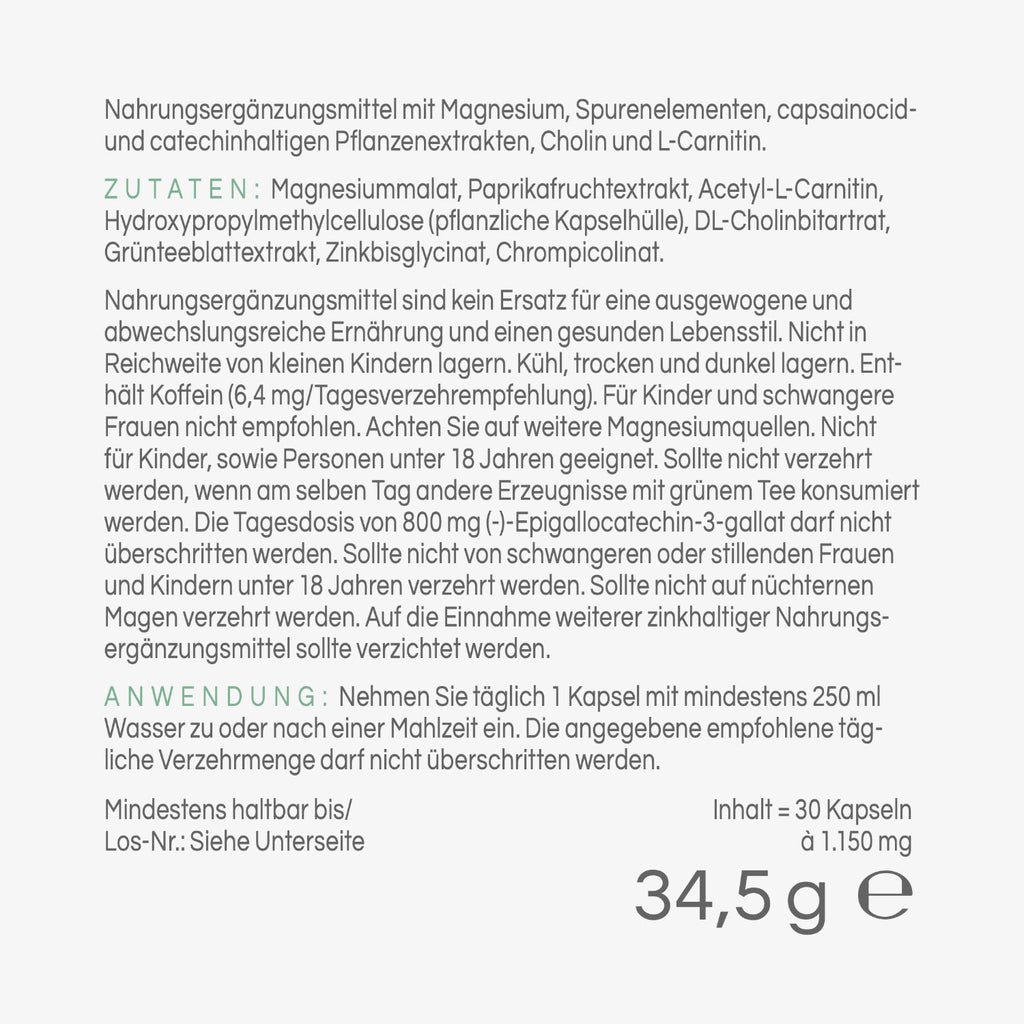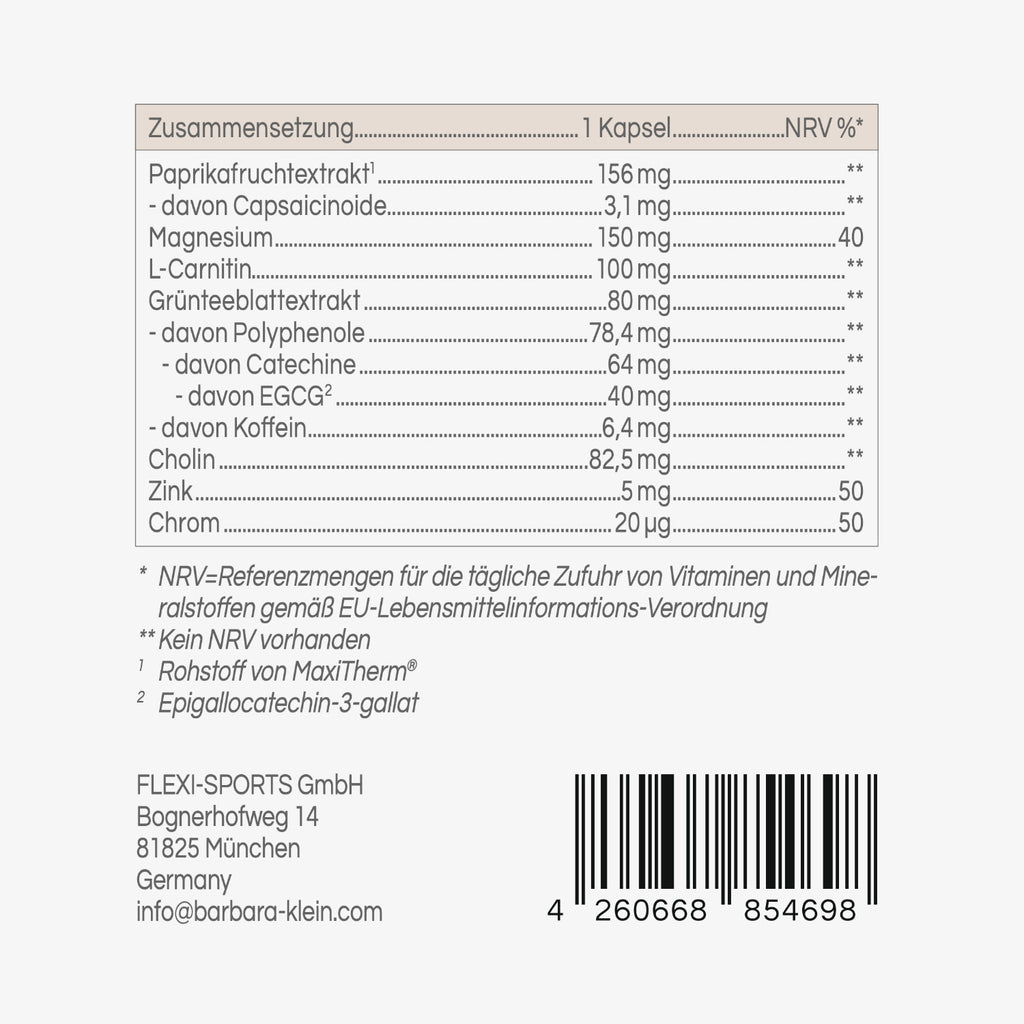 BK BARBARA KLEIN BB+ est un complément alimentaire innovant qui aide l'organisme à optimiser son métabolisme énergétique et lipidique naturel. L'association soigneusement sélectionnée de choline, de chrome, de magnésium, de zinc et d'extrait de thé vert de haute qualité avec EGCG apporte un soutien ciblé à la thermogenèse et au métabolisme lipidique.