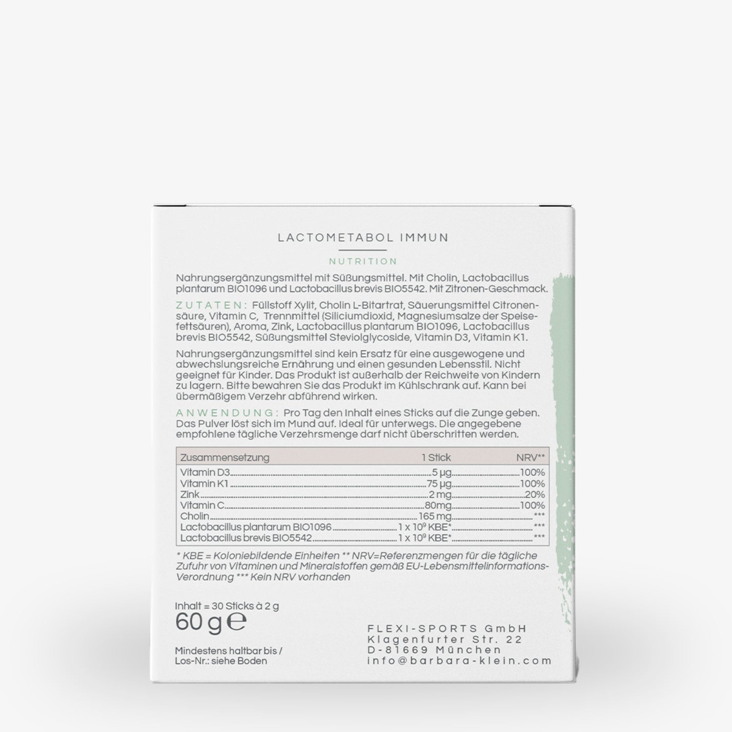 ainsi que les bâtonnets immunitaires pratiques LACTOMETABOL avec des cultures probiotiques et des vitamines importantes pour le système immunitaire.