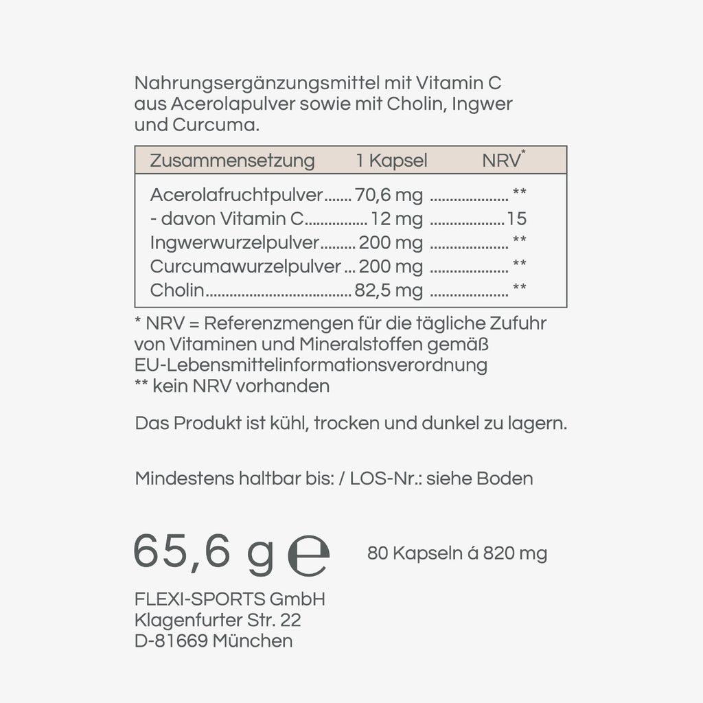 La formula intelligente combina vitamina C, colina, curcuma e zenzero per creare un efficace scudo protettivo contro i fattori di stress interni ed esterni.