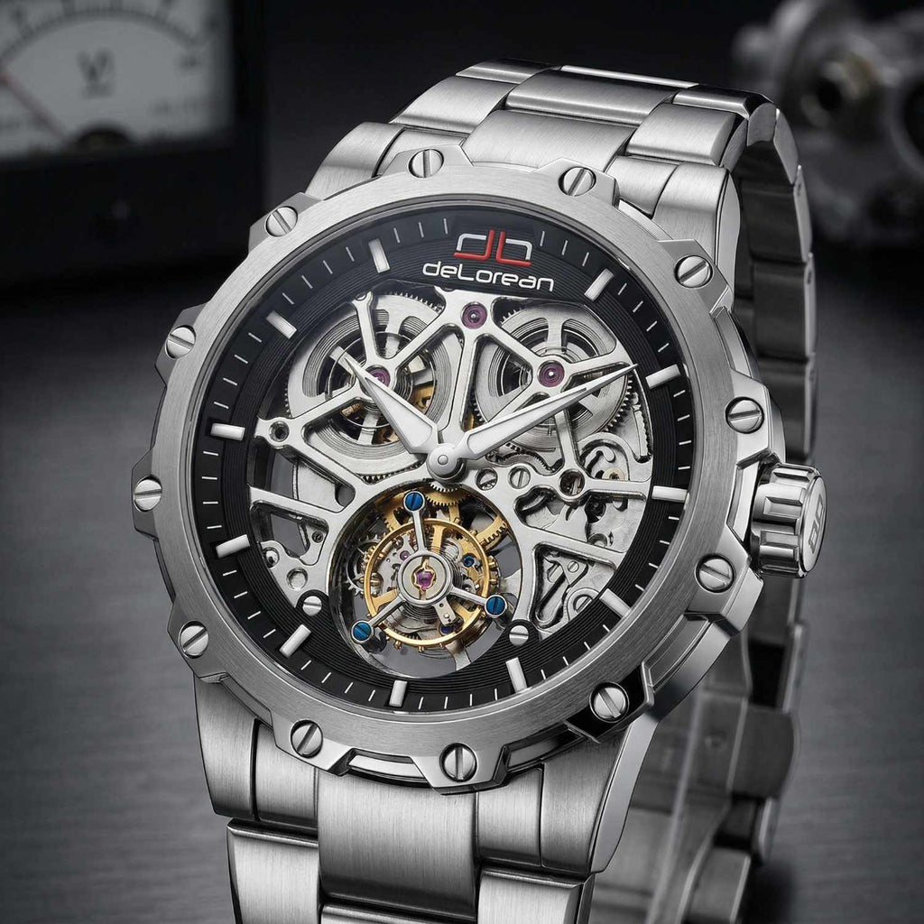 Die DELOREAN Automatikuhr DL05-T1072SS-s Survive ist ein aussergewöhnlicher Zeitmesser für anspruchsvolle Uhrenliebhaber. Mit ihrer extrem limitierten Auflage von nur 20 Exemplaren weltweit steht sie für Exklusivität, technische Raffinesse und unverwechselbares Design.