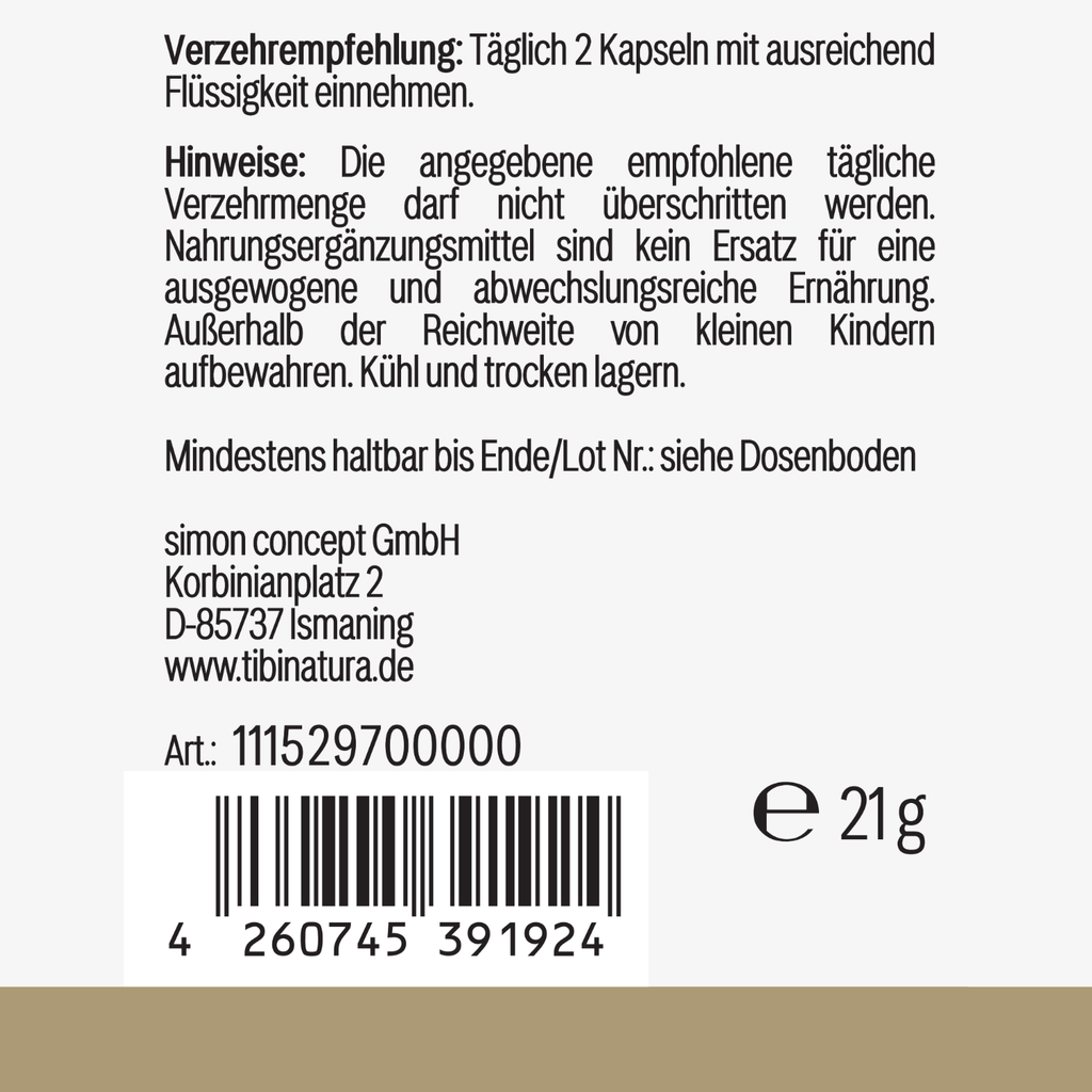 TIBI NATURA è sinonimo di integratori alimentari di alta qualità, realizzati in Germania, sviluppati con competenza, esperienza e passione per la salute. Tutti i prodotti sono vegani o vegetariani, privi di glutine, lattosio e additivi artificiali. Con ricette moderne, ingredienti collaudati e elevati standard qualitativi, TIBI NATURA è un partner affidabile per più energia, vitalità e benessere.