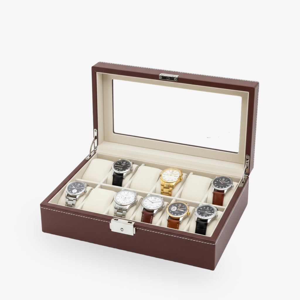 Grazie alla sua capacità di dodici orologi, il cofanetto è adatto sia ai collezionisti che agli appassionati di orologi di pregio. La parte anteriore con serratura offre un'ulteriore protezione contro la polvere e gli accessi non autorizzati.