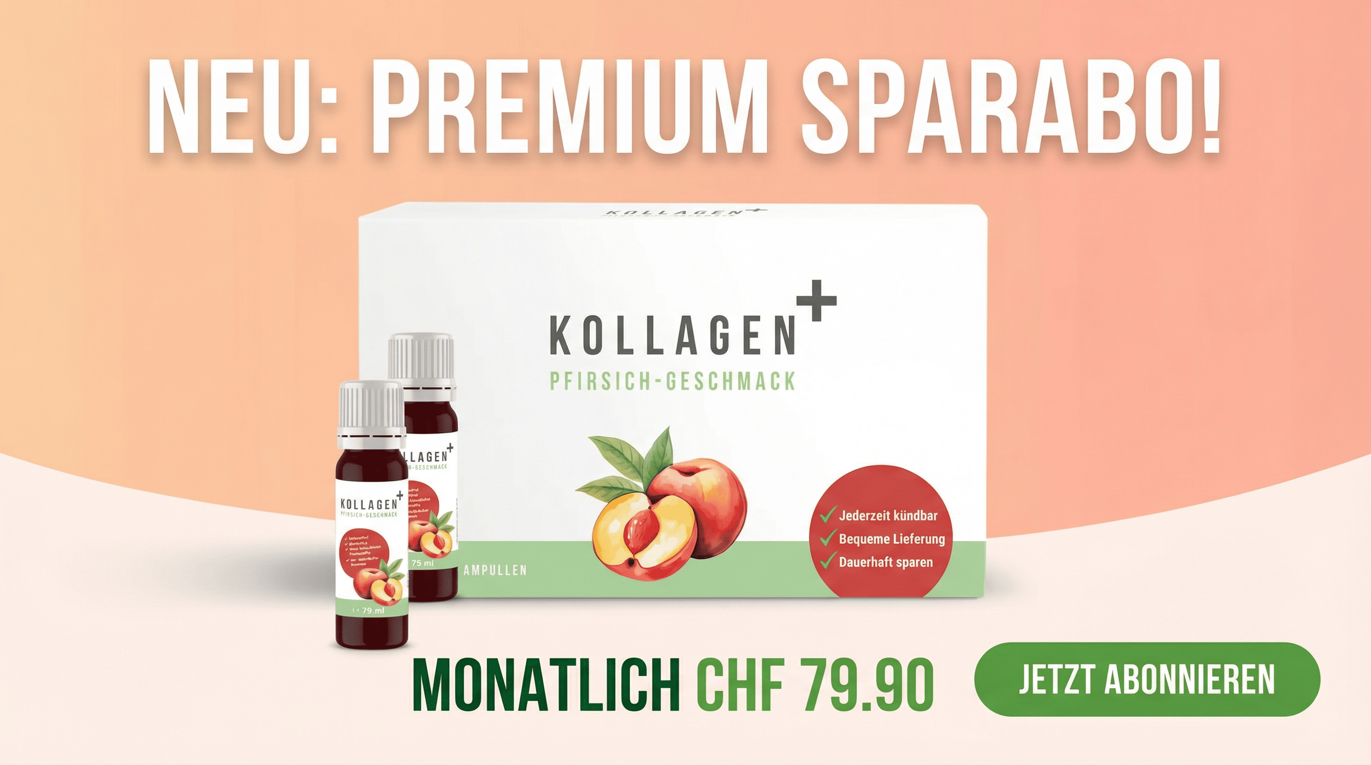 Ab sofort ist unser KOLLAGEN+ Trinkampullen Duo auch im Abomodell erhältlich – für alle, die ihren Kollagen-Vorrat regelmäßig, bequem und zum Vorteilspreis erhalten möchten.