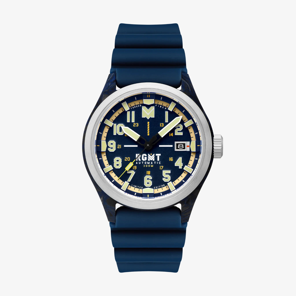 Die RGMT Defender Automatic – Blue Carbon ist ein Meisterwerk funktionaler Uhrmacherkunst. Mit ihrem geschmiedeten Carbongehäuse in einem auffälligen zweifarbigen Design kombiniert sie modernste Materialien mit extremer Strapazierfähigkeit. Das leichte, aber robuste Gehäuse macht sie zum idealen Begleiter für Expeditionen, Sport und Alltag.