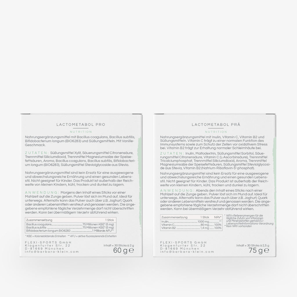 Ein gesunder Darm ist die Basis Ihres Wohlbefindens. Er beeinflusst Verdauung, Immunsystem, Energie und sogar Ihre Hautgesundheit. LACTOMETABOL PRO & PRÄ ist ein modernes Synbiotikum in praktischer Stickpack-Form, das Probiotika und Präbiotika optimal kombiniert. Die zweistufige Anwendung unterstützt Ihre Darmflora gezielt und nachhaltig – ganz ohne Wasser, jederzeit und überall.