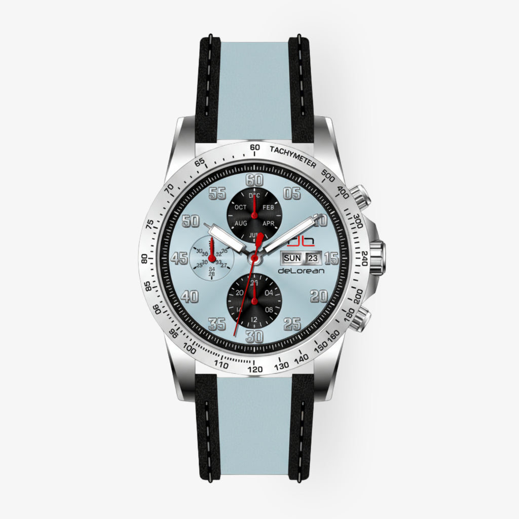 Die deLorean Automatikuhr «Racing» DL05-1269-SL-ebl ist eine stilvolle Hommage an den Motorsport – präzise, robust und ausdrucksstark. Das Edelstahlgehäuse – 43 mm – mit sportlicher Tachymeter-Lünette verleiht der Uhr ein kraftvolles Erscheinungsbild. Geschützt durch ein saphirbeschichtetes Mineralglas offenbart sich das kontrastreiche eisblau-schwarze Zifferblatt, das durch weisse und rote Zeiger sportlich akzentuiert wird.