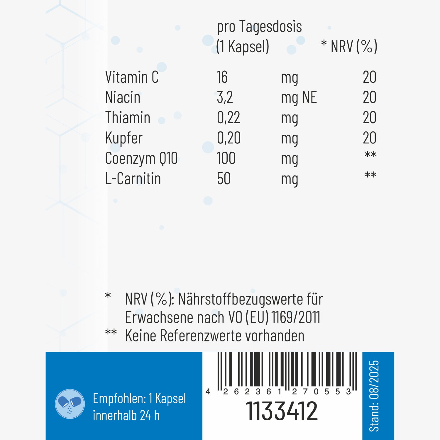 Die enthaltenen Vitamine C, B1 (Thiamin) und B3 (Niacin) tragen zusätzlich zur Verringerung von Müdigkeit, zur normalen Herzfunktion und zum Nervenschutz bei. Diese Kombination eignet sich optimal für Menschen mit erhöhtem Energiebedarf, im Alter oder bei einseitiger Ernährung.