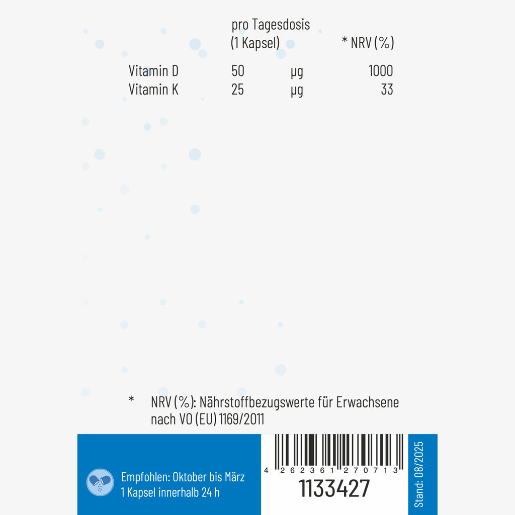 Gezielt dosiert für die Wintermonate – 2000 I. E. D3 + 25 µg K2