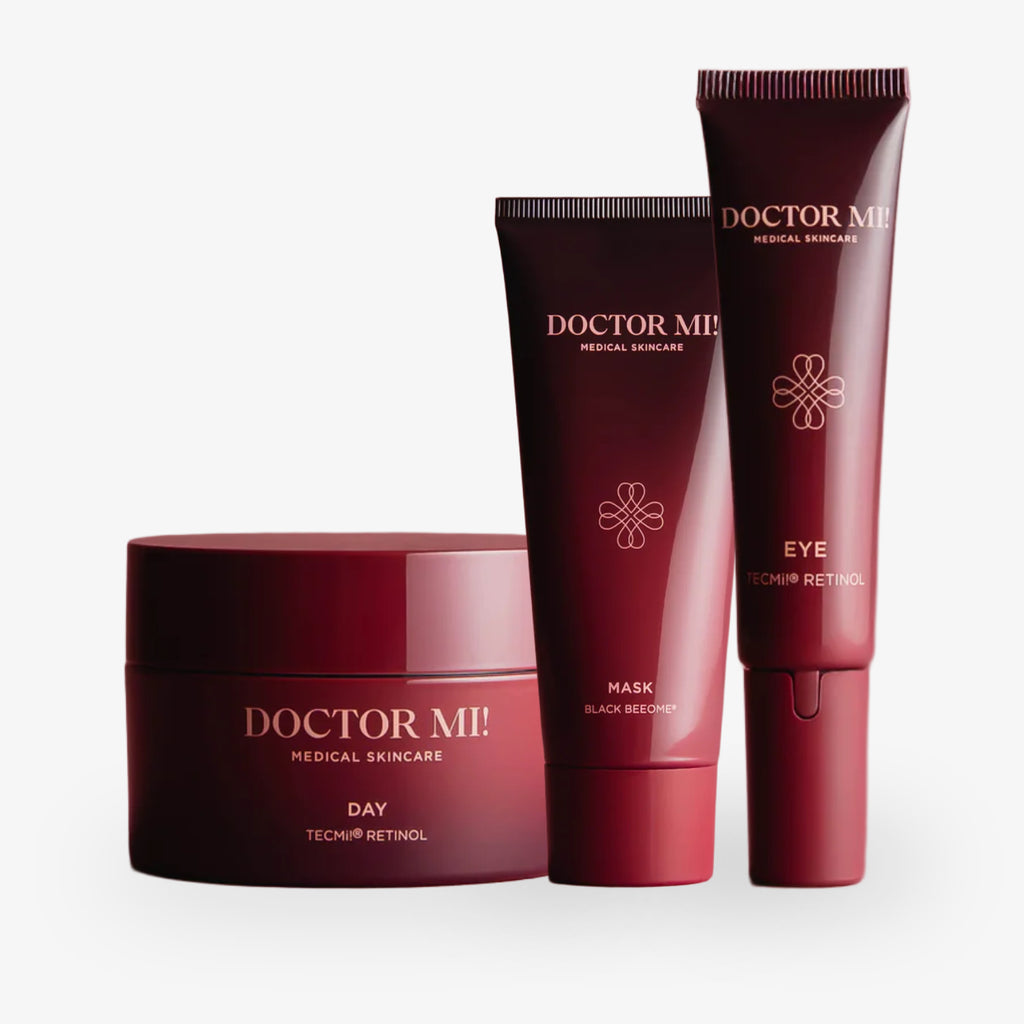 Das exklusive Set Morning Glow Ritual von DOCTOR MI! bietet eine hochwirksame Kombination aus drei perfekt aufeinander abgestimmten Pflegeprodukten für eine sichtbar strahlende, geglättete Haut – Tag für Tag. Es enthält: