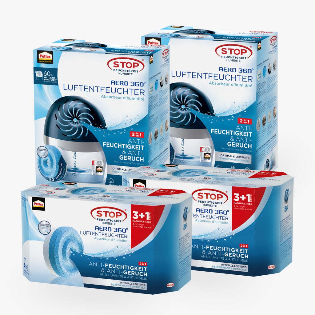 Dank der innovativen AERO 360° Technologie wird die Luft gleichmässig um den Tab herumgeführt, wodurch Feuchtigkeit effektiv absorbiert und unangenehme Gerüche neutralisiert werden. So beugen Sie Schimmelbildung, Kondenswasser und modriger Luft zuverlässig vor – ganz ohne Strom, Lärm oder Wartungsaufwand.