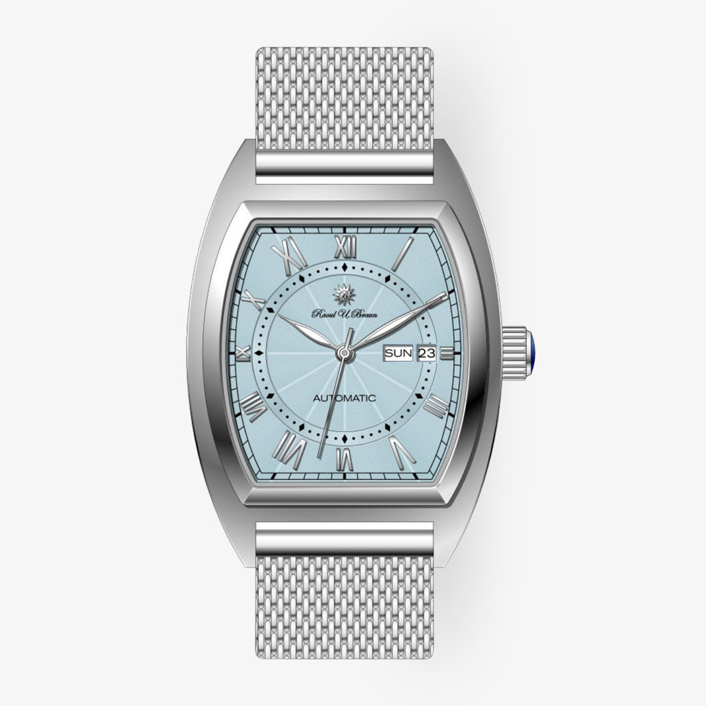 Die Raoul U. Braun RUB05-0538A-SM-eisbl Miyota 8205 ist ein markanter Zeitmesser für Liebhaber klassischer Automatikuhren. Das auf nur 123 Exemplare limitierte Modell vereint zeitlose Eleganz mit moderner Technik und beeindruckender Verarbeitung.