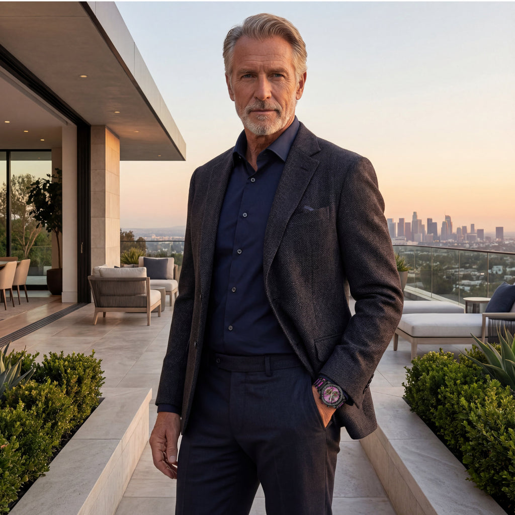 Das purplefarbene Sunburst-Zifferblatt zieht durch seine offene Unruh alle Blicke auf sich und erlaubt einen faszinierenden Blick auf die Mechanik des Automatikwerks. Die Anzeige von Datum, Woche und Monat ist klar strukturiert und harmonisch ins Design integriert.