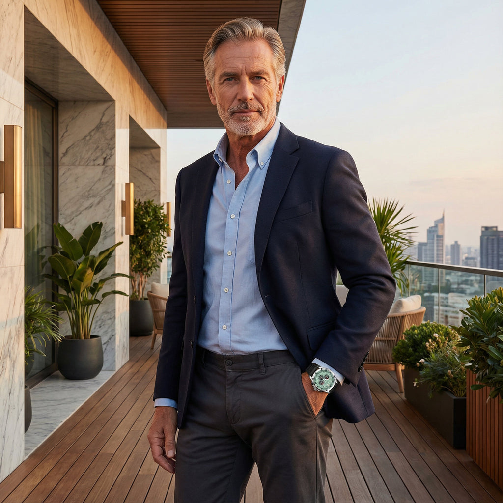 Das Mint-schwarze Zifferblatt setzt einen frischen, zeitgemässen Akzent und bietet dank klarer Anzeigenstruktur eine ausgezeichnete Ablesbarkeit. Die Zeiger mit roten Spitzen verstärken den sportlichen Look und harmonieren perfekt mit den technischen Details.
